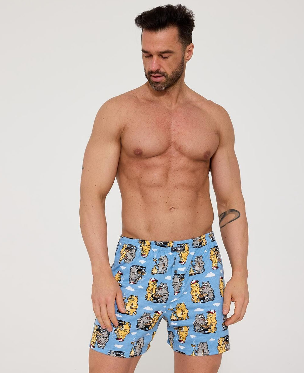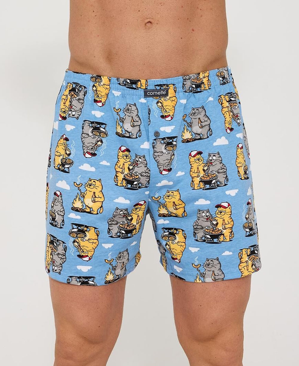 Додайте затишку та гарного настрою у свій день! Чоловічі боксерки Cornette 001/184 Classic — це поєднання перевіреного часом комфорту та кумедного дизайну. Модель виконана у приємному блакитному кольорі та оздоблена оригінальним принтом «Коти на пікніку».