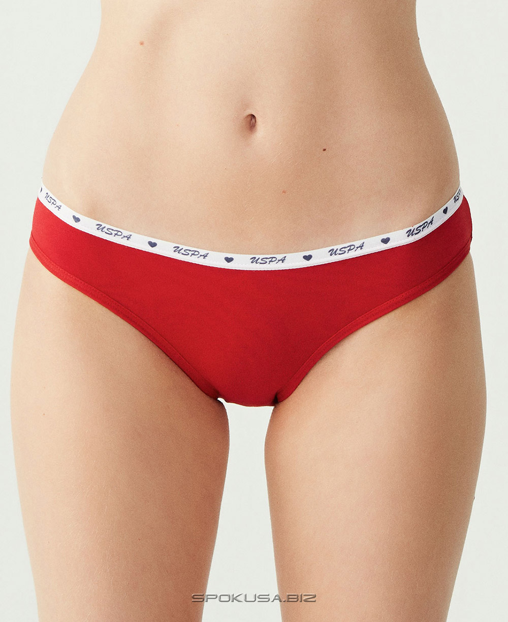 Жіночі трусики сліпи зроблені з високоякісної бавовняної тканини з додаванням еластану. Мають низьку посадку. В поясі прикрашені білою еластичною резинкою з сердечком і написом USPA.