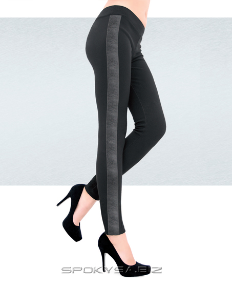 Щільні легінси з еластичного полотна з шкіряними боковими вставками, з втягуючим ефектом.