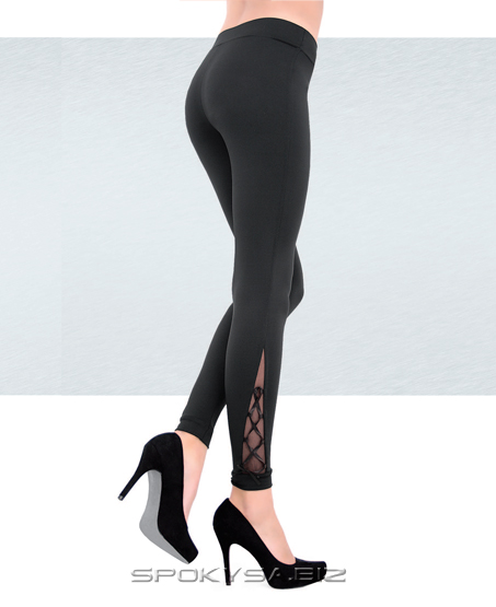 Тонкі легінси з трикотажного полотна з декоративною шнуровкою і прозорою вставкою.