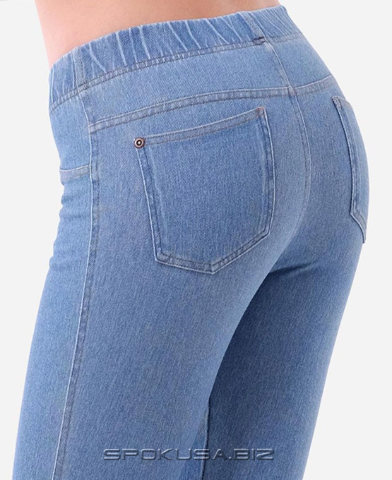 Легкі жіночі легінси зроблені з трикотажного полотна "джинс", з легким ефектом потертості. Легінси мають широкий, еластичний пояс з резинкою всередині.