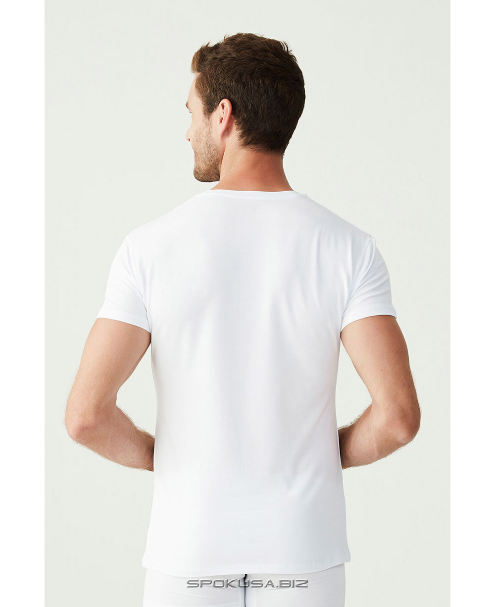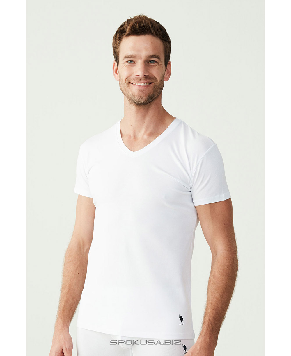 Чоловіча футболка з коротким рукавом, зроблена з високоякісної тканини. Має V-подібний виріз горловини та контрасний логотип U.S. Polo ASSN.