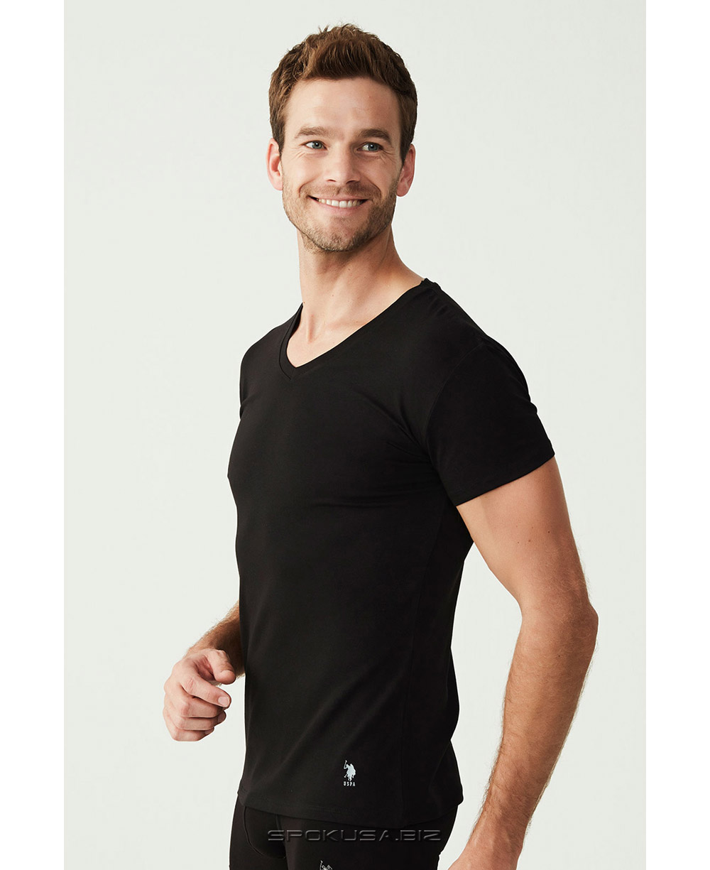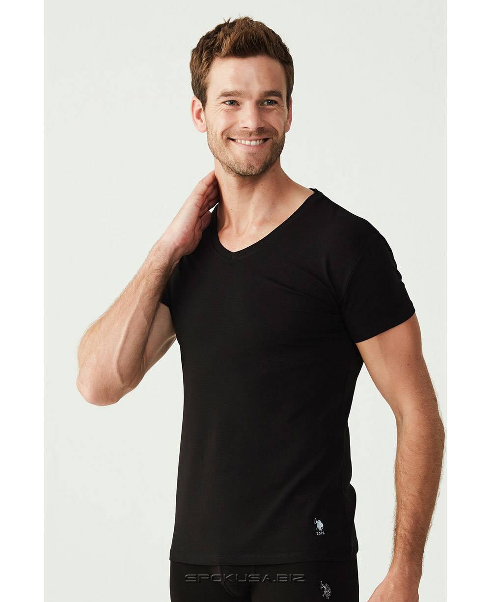 Чоловіча футболка з коротким рукавом, зроблена з високоякісної тканини. Має V-подібний виріз горловини та контрасний логотип U.S. Polo ASSN.