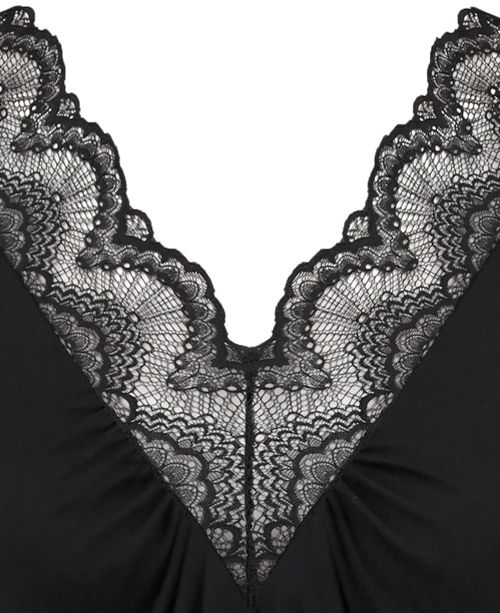 Сорочка міні до середини коліна вільного силуету – ідеальне поєднання комфорту та елегантності. Глибокий V-подібний виріз декольте, оздоблений витонченим мереживом, додає ніжності та жіночності. Легка м'яка зборка по вирізу надає виробу витонченості та створює плавний силует. Завдяки вільному крою, сорочка не сковує рухів і забезпечує максимальний комфорт під час носіння.