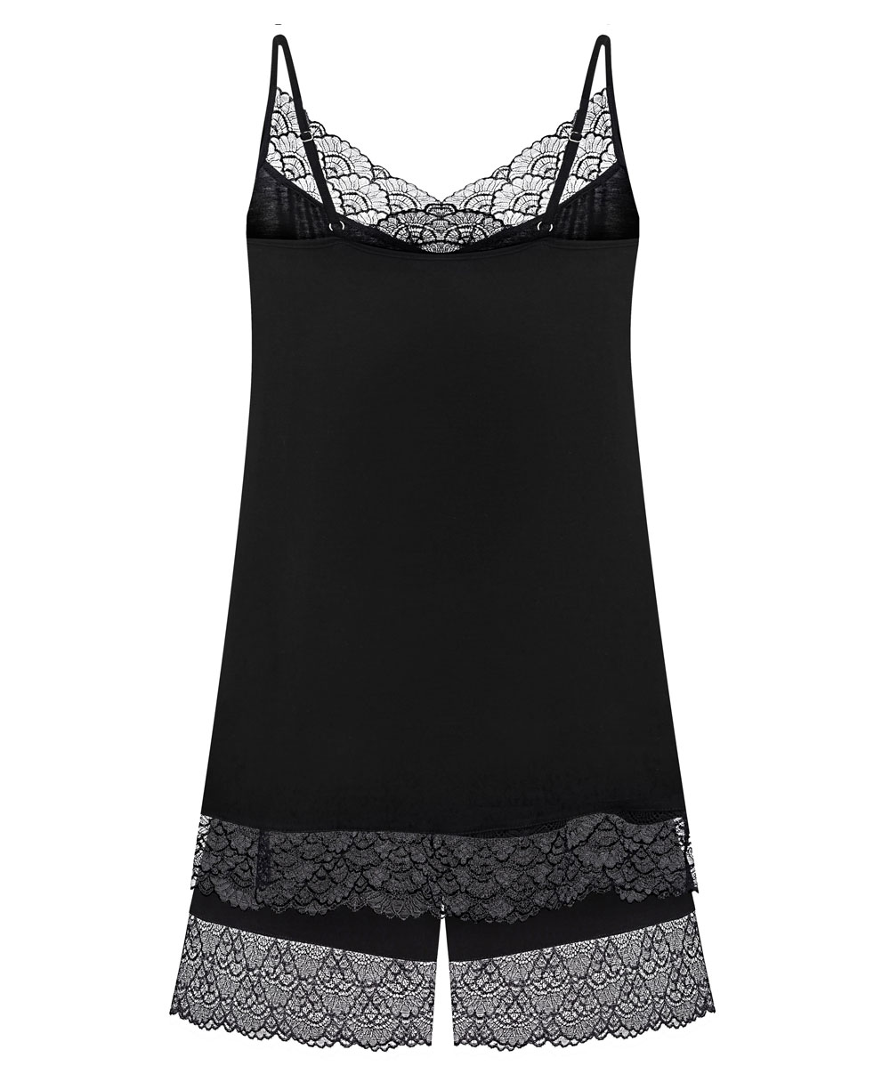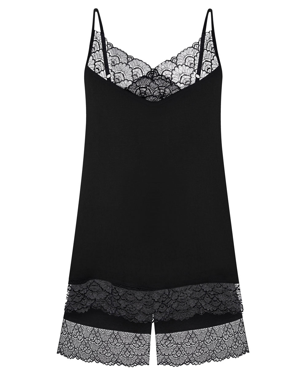 Жіноча піжама з майкою та шортами. Стильна та комфортна жіноча піжама, яка поєднує базовий крій із витонченими деталями. Приталена майка має серцеподібний виріз декольте, оздоблений ніжним мереживом, що підкреслює жіночність образу. Тонкі бретелі регулюються за допомогою гіпоалергенної фурнітури, яка не тьмяніє під час носіння. Шорти доповнені мереживом із квітковим мотивом уздовж нижнього краю, додаючи легкості та романтичного шарму.