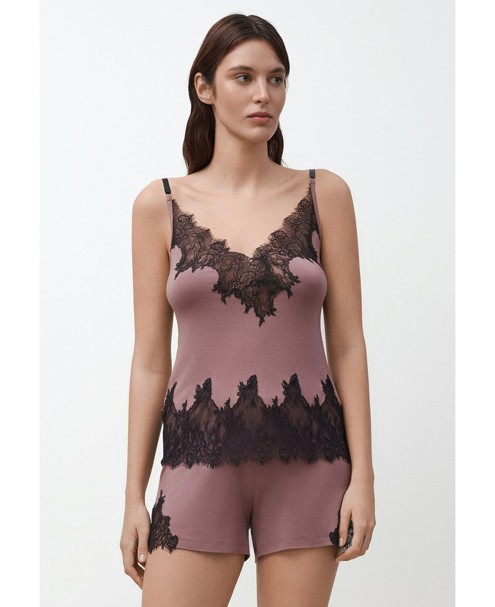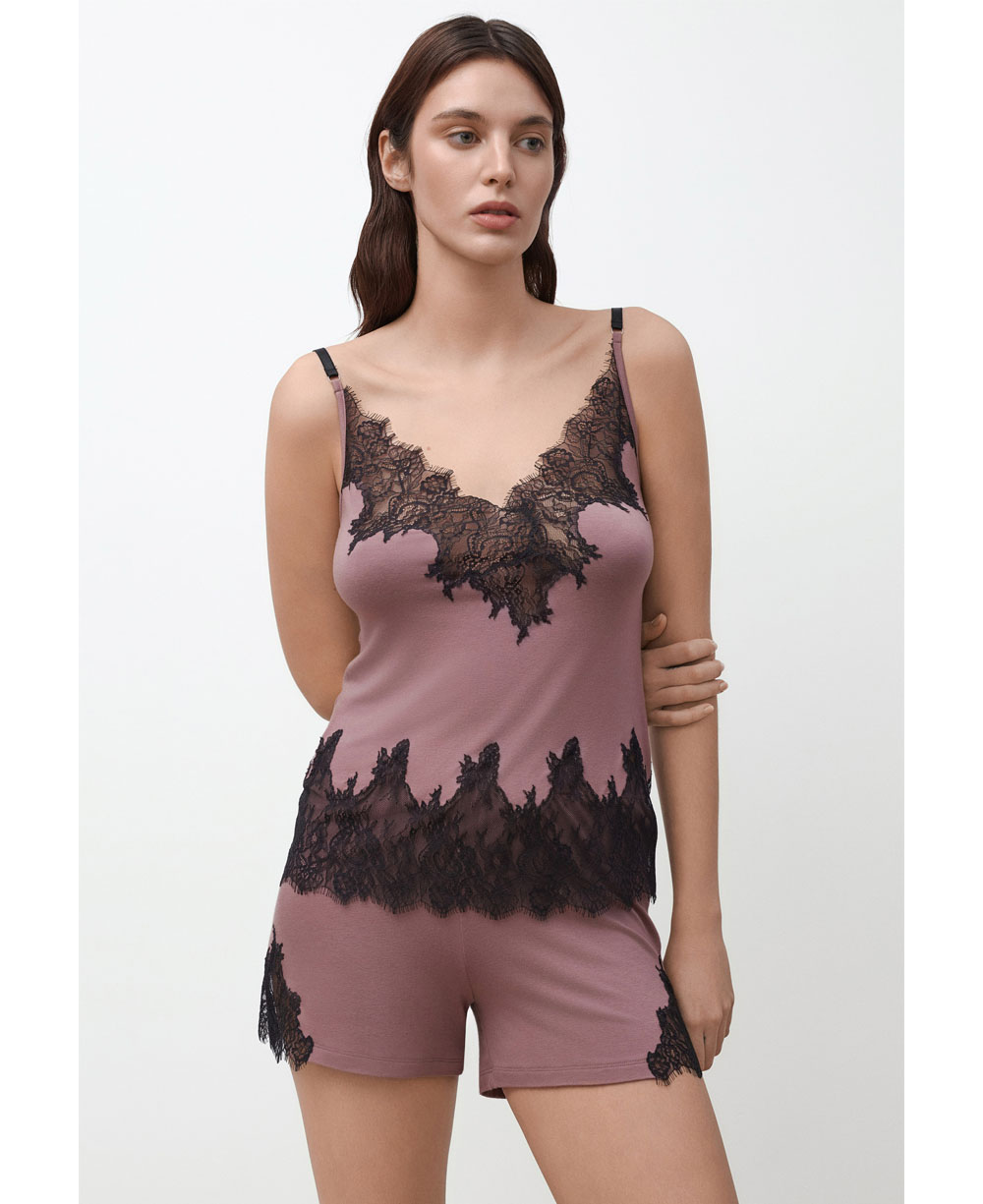Відчуйте дотик справжньої жіночності з моделлю Effetto 03337. Цей комплект (топ на бретелях + шорти) виконаний у витонченому відтінку «троянда в попелі» — м’якому, пудровому кольорі, що дарує спокій та підкреслює природну красу. Виготовлена з екологічного бамбукового волокна, піжама забезпечує ідеальний мікроклімат для тіла, залишаючись гіпоалергенною та невагомою.