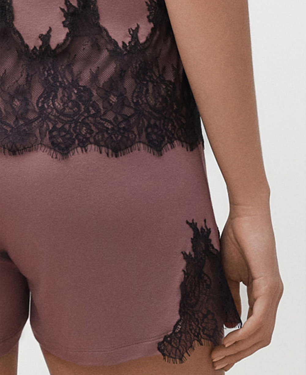 - Витончений дизайн шортів: Фігурно вирізане мереживо по боках додає образу романтичного настрою та візуально подовжує лінію ніг.