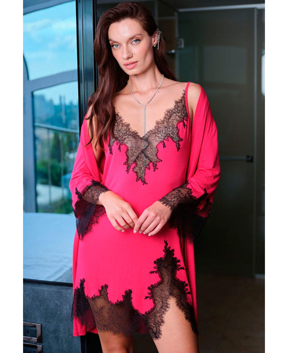 Відкрийте для себе магію пристрасті та бездоганного комфорту з нічною сорочкою Effetto 03329PO із лімітованої колекції Elegant Enigma. Поєднання яскравої фуксії та драматичного чорного мережива створює образ, який не потребує зайвих слів. Ця модель розроблена спеціально для жінок, які обирають розкішну білизну у великих розмірах (Plus Size).