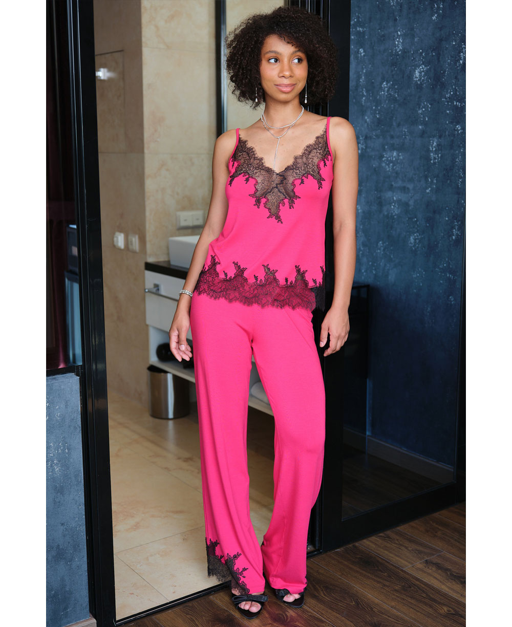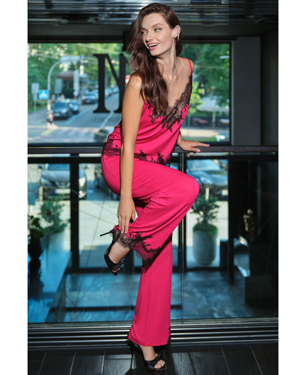 Відкрийте для себе поєднання пристрасного кольору та абсолютного затишку з піжамою Effetto 03331O із ексклюзивної колекції Gone with the Wind. Цей комплект створений для жінок, які прануть виглядати яскраво, не жертвуючи комфортом. Глибока фуксія в контрасті з чорним мереживом створює настрій впевненості та жіночності.