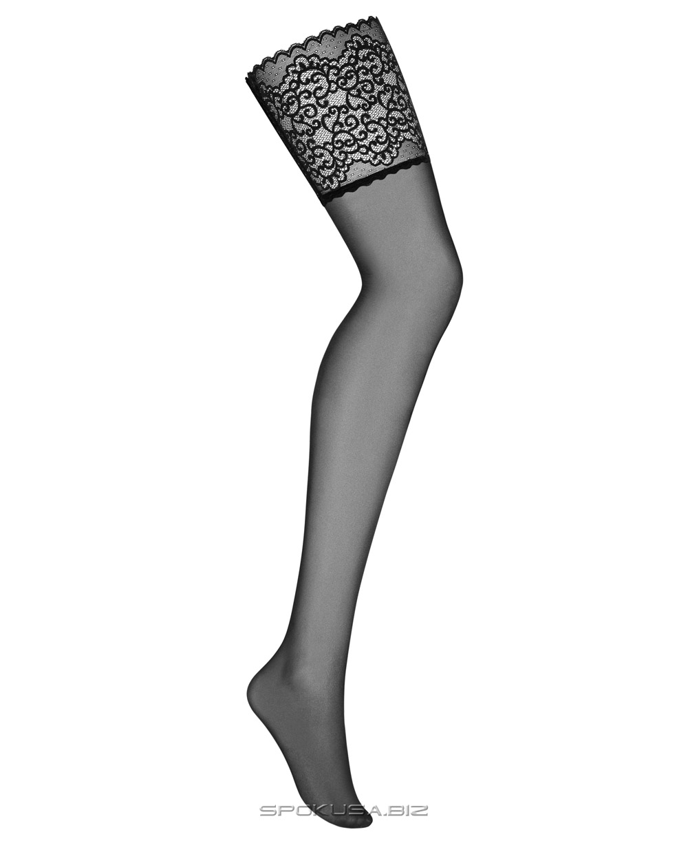Чуттєві, чорні панчохи, відмінно доповнюють спокусливу жіночу білизну. Зроблені з напівпрозорого матеріалу з відмінною еластичністю. Прикрашені вишуканим, еластичним мереживом навколо стегна.