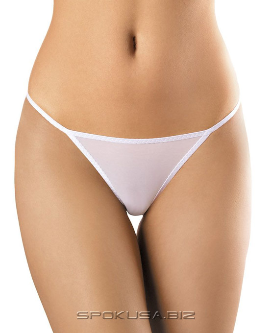 Класичні трусики стрінги зроблені з напівпрозорої сіточки на тоненьких ремінцях. Ззаду прикрашені атласним бантом.