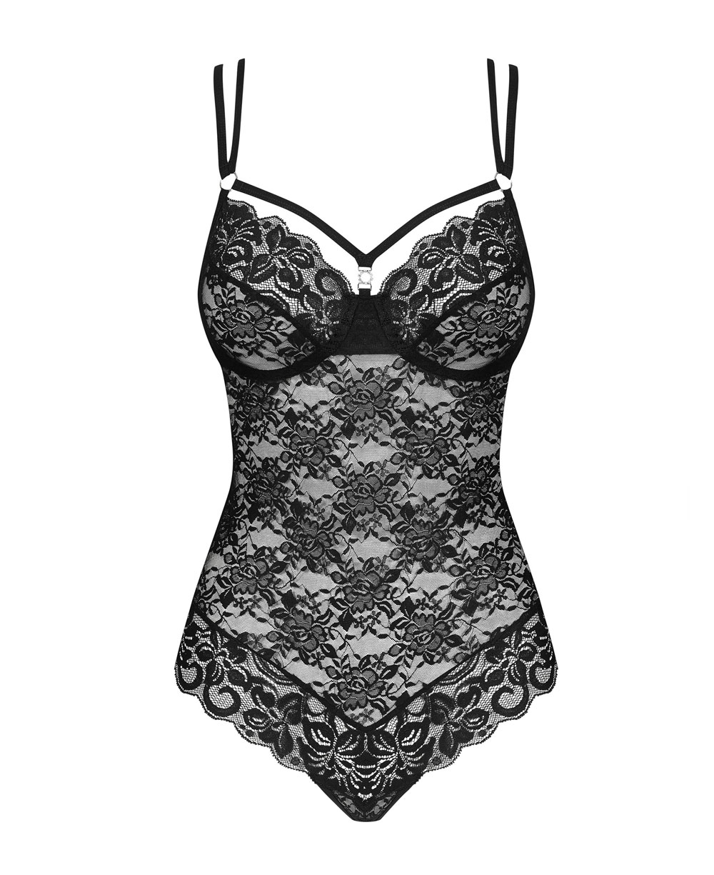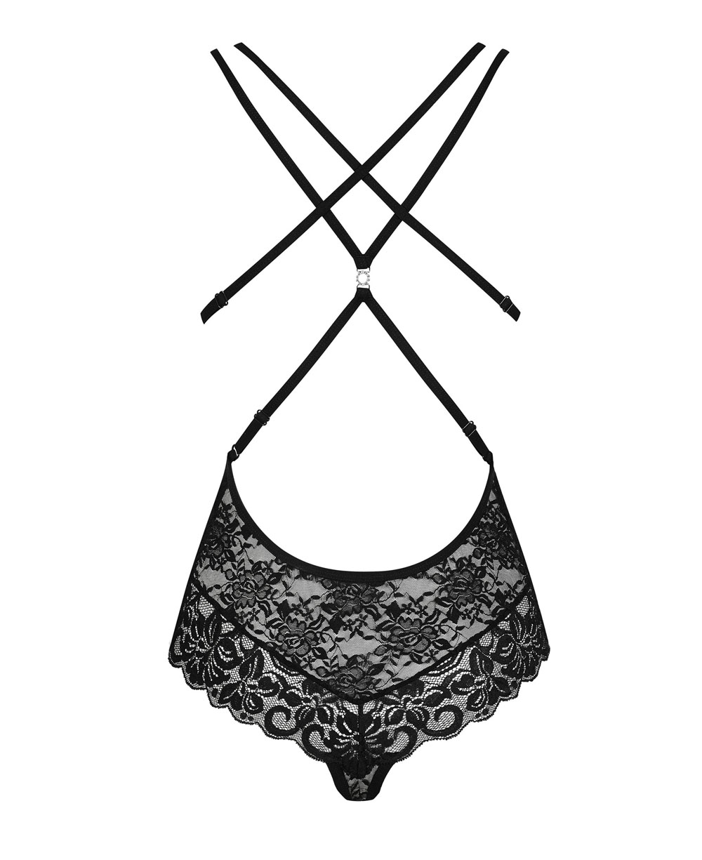 Боді Obsessive 860-TED-1 — неймовірно сексуальне мереживне боді чорного кольору з трояндовим візерунком. Чотири перехрещені регульовані бретельки на оголеній спині створюють приголомшливий ефект. Чашечки на кісточках підкреслюють груди. Боді оздоблене звабливими бретельками на бюсті, блискучими прикрасами та кільцями. Еластична тканина приємна на дотик. Регулювання Did2Fit для ідеальної посадки.