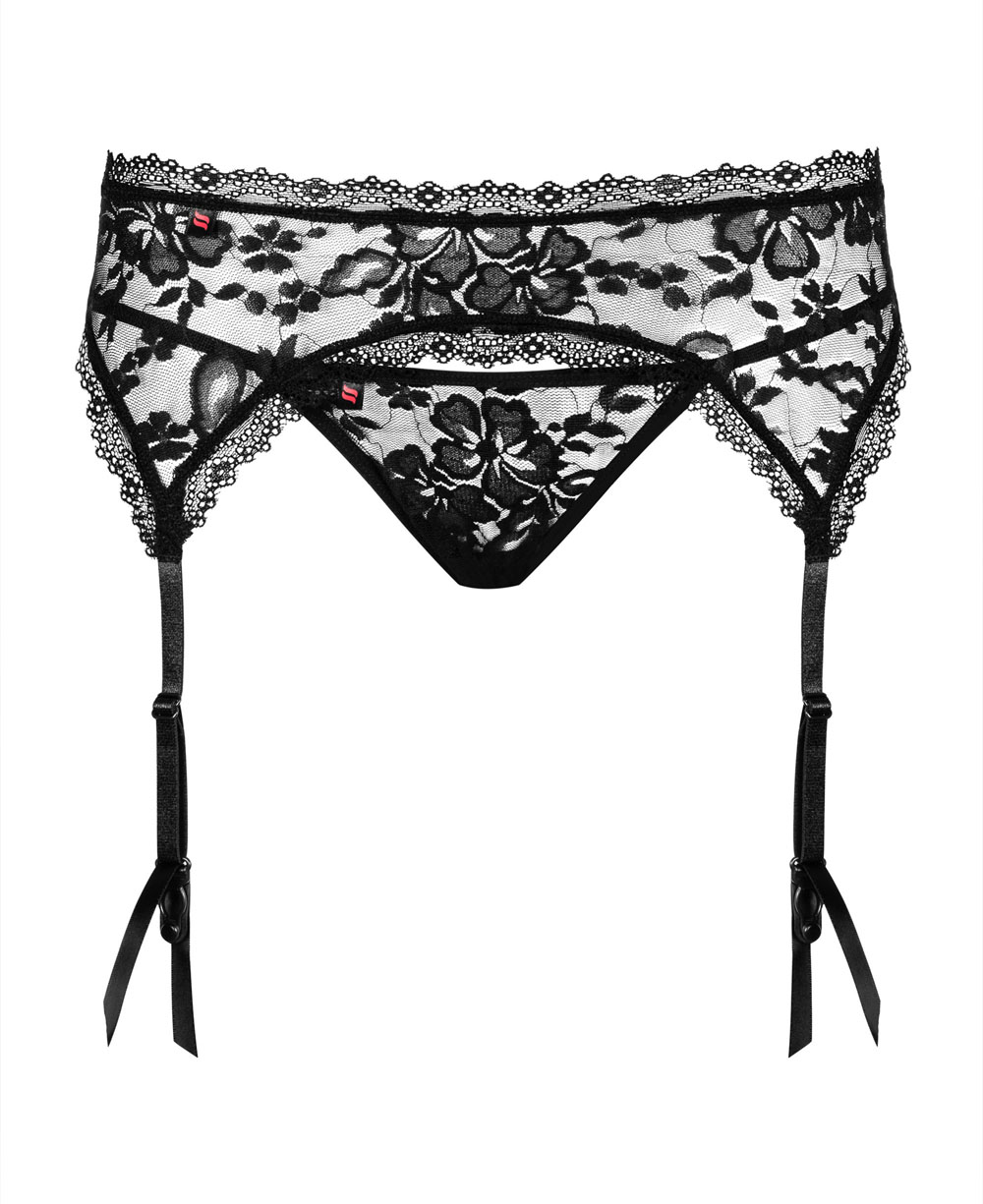 Пояс для панчіх Obsessive CATIA — ніжне мереживо з квітковим мотивом, регульовані підв'язки, мереживні стрінги в комплекті. Тонка мереживна обробка додає шарму. Еластична тканина комфортно сидить. Оригінал з Польщі.