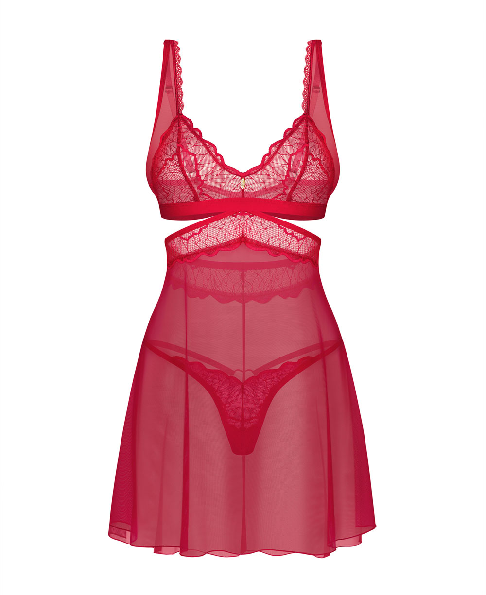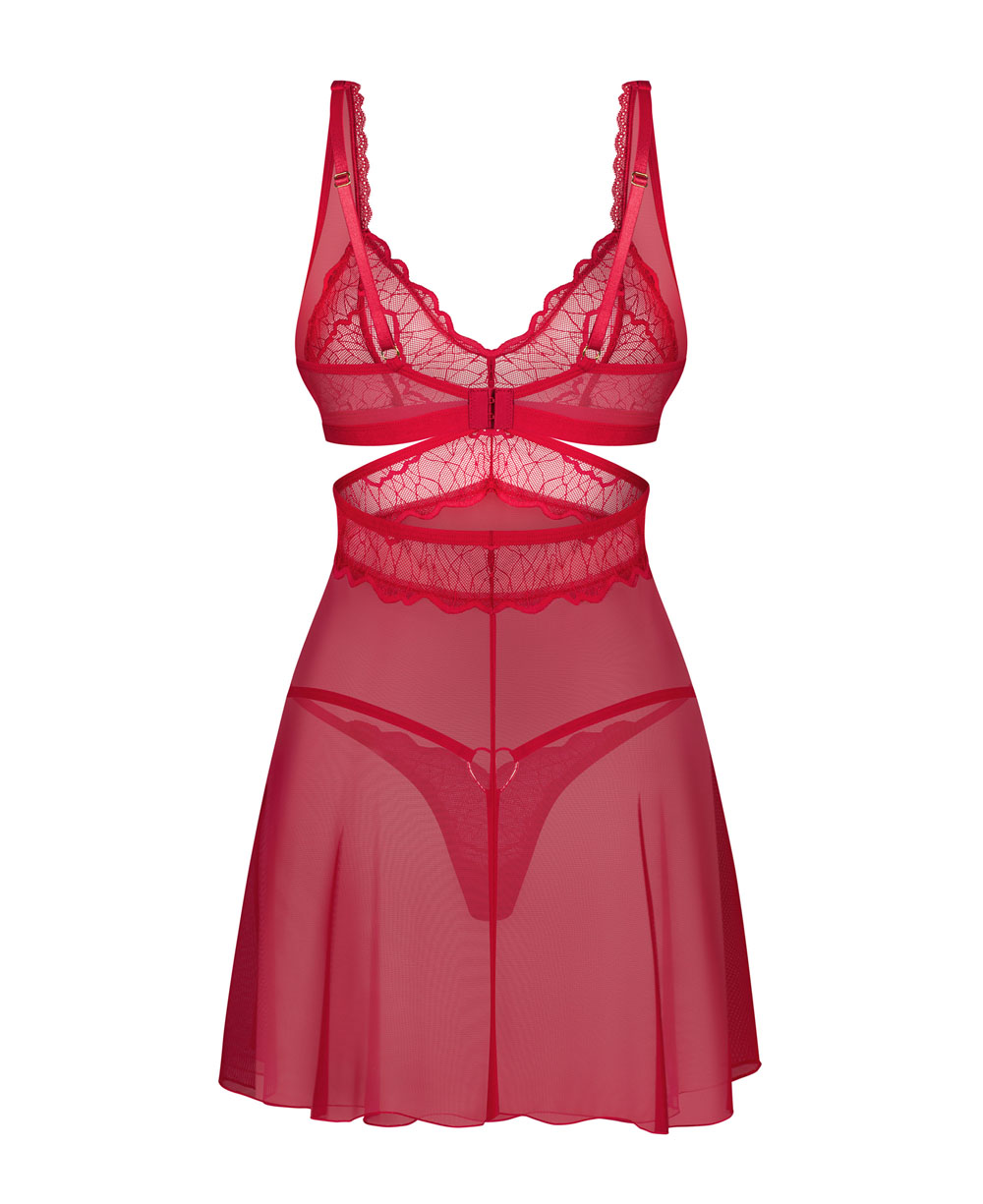Червона нічна сорочка Obsessive Cupide Desir Babydoll з мереживом та стрінгами