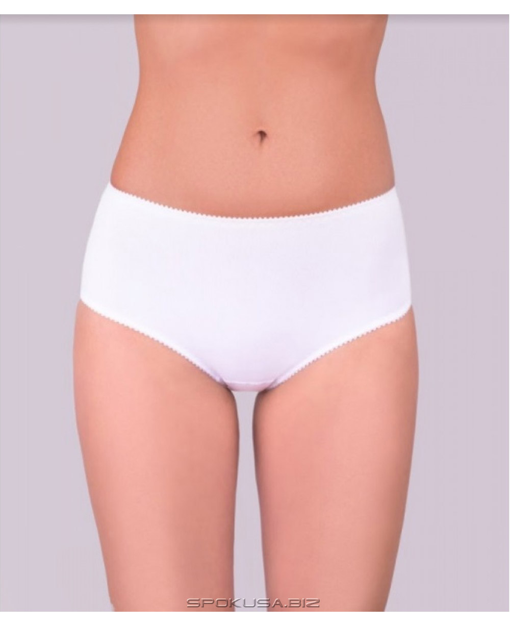 Класичні жіночі трусики "сліп" з еластичного трикотажного бавовняного полотна. Висока лінія талії. Оздоблення - мереживо на задній деталі.