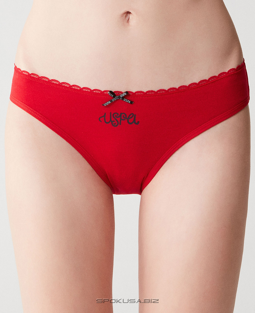 Жіночі трусики сліпи зроблені з високоякісної бавовняної тканини з додаванням еластану. Мають низьку посадку. В поясі прикрашені тонкою, еластичною мереживною стрічкою та атласним бантиком з написом USPA.