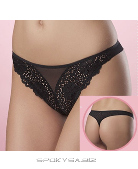 Трусики стрінги з еластичного мережива і еластичного сітчастого полотна з низькою лінією талії. Комфортна задня деталь без обробки зрізів.