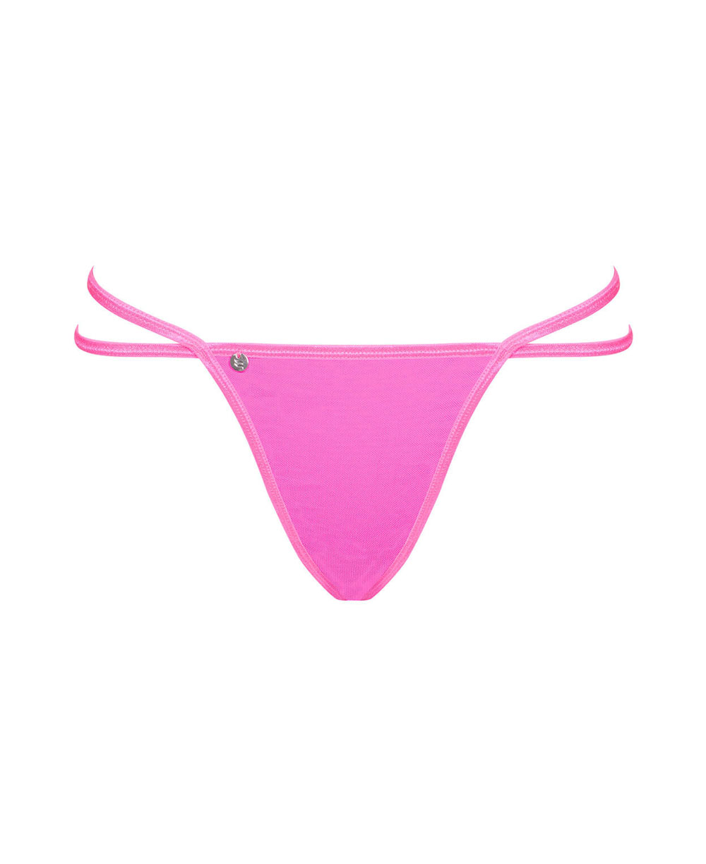 Неонові рожеві стрінги Obsessive Chainty з срібним ланцюжком
