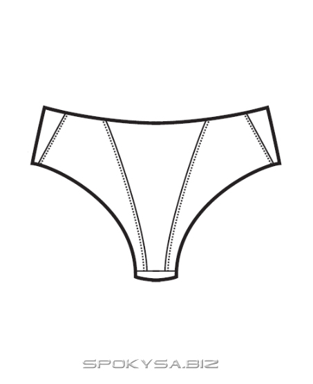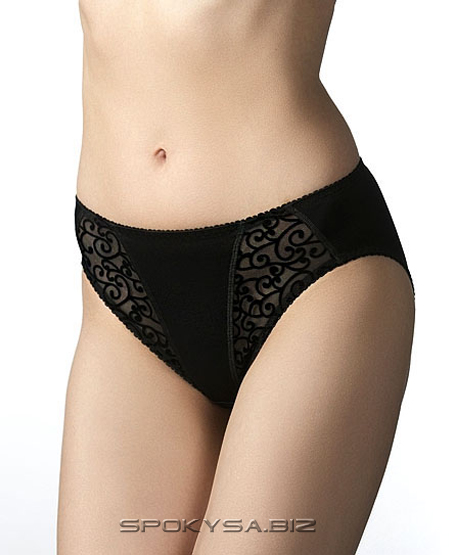 Труси «сліп» з еластичного сітчастого полотна з набивкою «флок» і еластичного трикотажного полотна. Середня лінія талії.