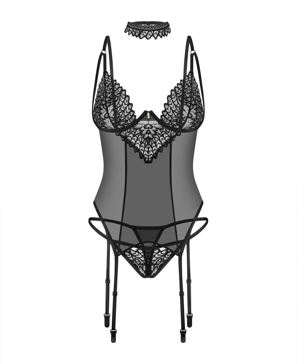 Чорний прозорий корсет Obsessive Donarella зі шнурівкою та коміром