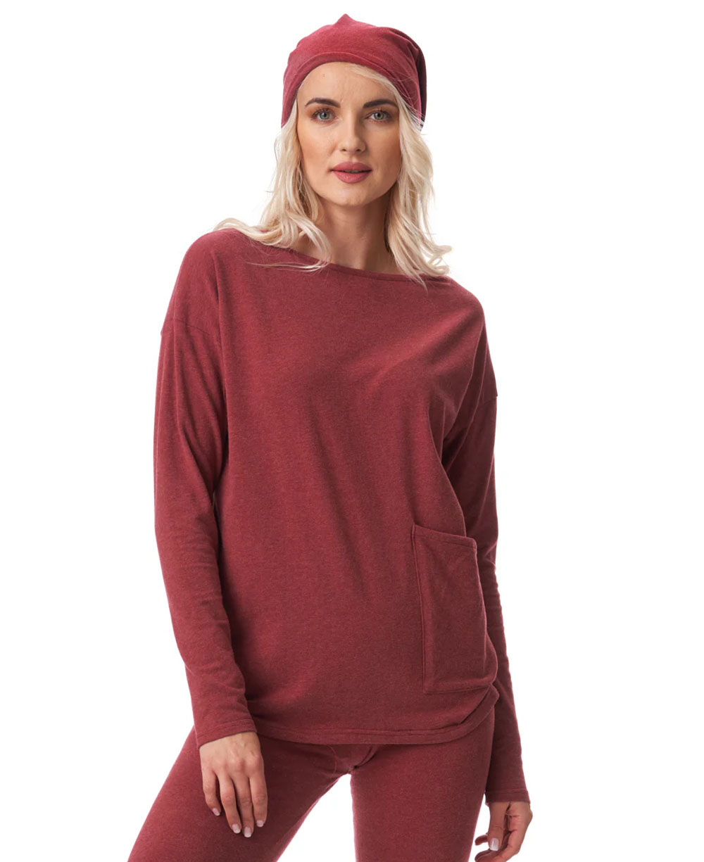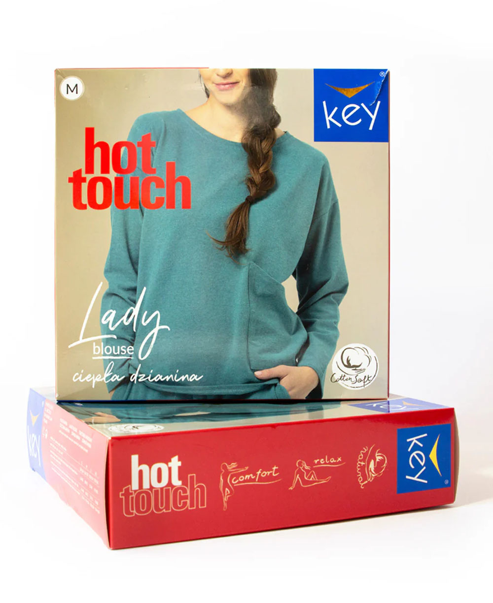 Чудовий комплект виготовлений з трикотажної тканини HOT TOUCH з натуральних бавовняних волокон з начосом, який чудово захищає від холоду та морозу, покриваючи наше тіло м'якою та чудовою бавовною. Зручний і теплий домашній світшот - HOT TOUCH. Приємний на дотик світшот вільного, злегка звуженого крою, який природно підкреслює жіночу фігуру. Вільні брюки з низом вільного крою, зібрані м'якою манжетою, яка захищає від втрати тепла. З боків мають глибокі кишені для улюблених речей.